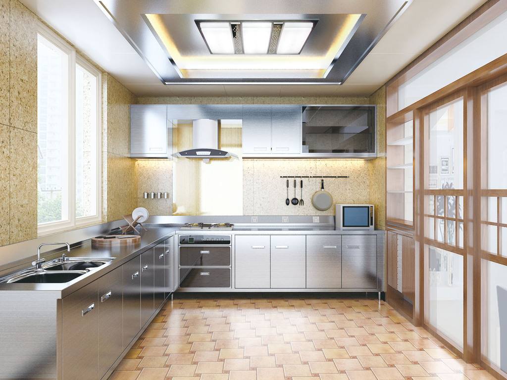 不锈钢整体橱柜,简单说就是用不锈钢为材料,制作的橱柜,它从酒店食堂不锈钢厨具演化而来,家庭不锈钢橱柜的概念提法和形成要比木质橱柜稍晚,大概成型于本世纪九十年代末,在一定范围流行不衰,原因大约有二:一是它的强烈现代金属风格,深获热爱现代时尚气息人士的热捧;二是受木质橱柜容易上潮开裂之致,不锈钢恰好能弥补木质橱柜的缺陷,于是原来只出现在酒店餐馆和食堂的不锈钢材质类厨具被引进了家庭橱柜行列当中来了,不锈钢橱柜透露出强烈的后现代特征,当从这样的厨房中端出一盘盘美味食蔬,就好像经过工业化的精密铸造一样,既清爽又缜密。